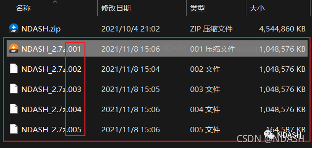 2、分段文件解压缩:所有分段文件需要同一目录下才行。