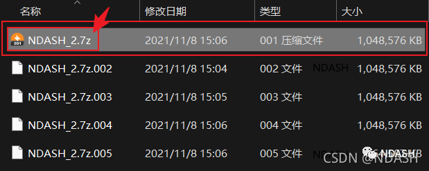 分段后的文件默认保存路径在源文件下面,7zip的分段文件默认名: