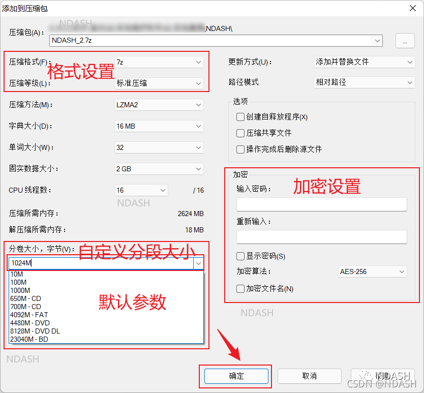 1、大文件分段压缩:注意设置分段大小参数,其他无要求默认即可。